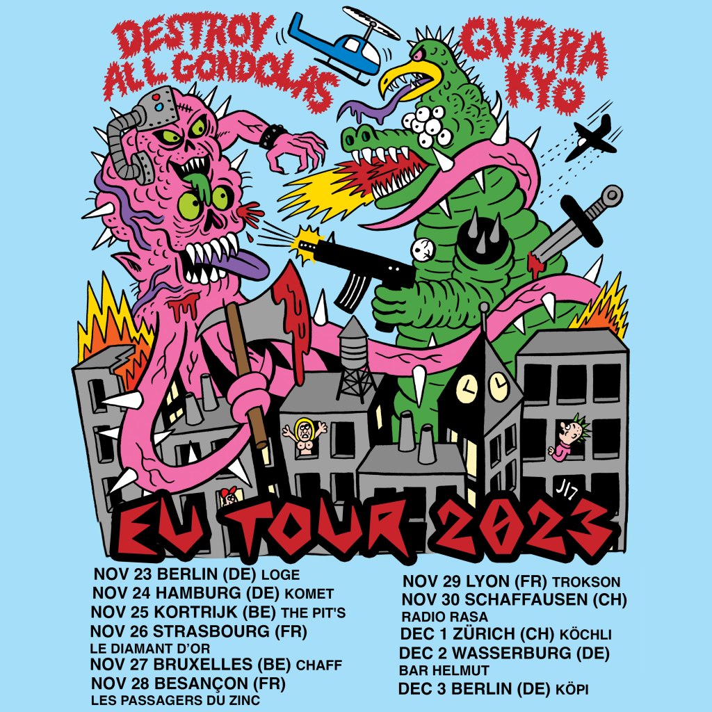 Gūtara Kyō from Japan and Destroy all Gondolas from Italy on tour from 23rd November to 3rd December 2023, presenting the new Split 7’’ out on Slovenly Recordings.